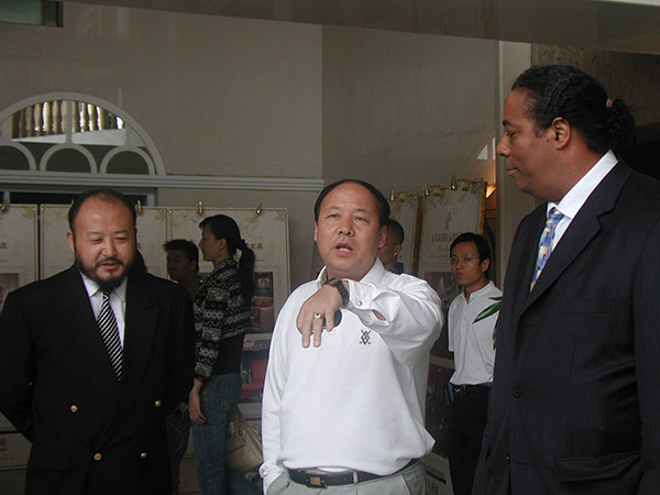 集團公司董事長陳啟建先生在為華人華商會主席介紹開發(fā)項目