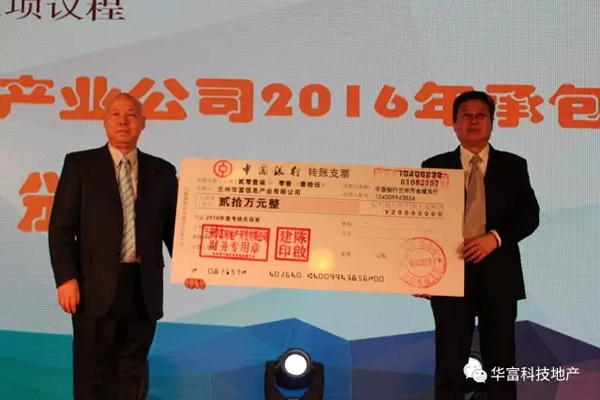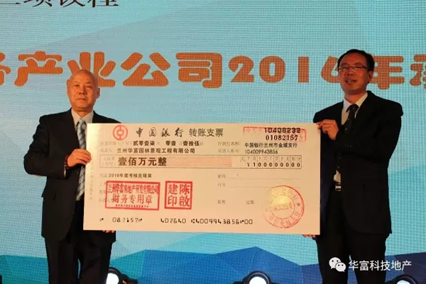 隨后通報蘭州華富集團各產(chǎn)業(yè)公司2016年度目標任務(wù)完成及考核獎勵情況,董事長先生向各個產(chǎn)業(yè)公司發(fā)放了現(xiàn)金獎勵。