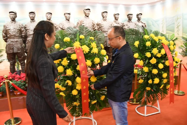 上午11時,集團公司成員準時到達會寧長征勝利紀念館,華富集團董事長陳啟建先生、總裁馬信遠先生、副總裁陳亮先生,及華富黨支部書記胡春蘭女士一起為革命先輩們敬獻花籃并整理緞帶,表達了對革命先輩們崇高的敬意。