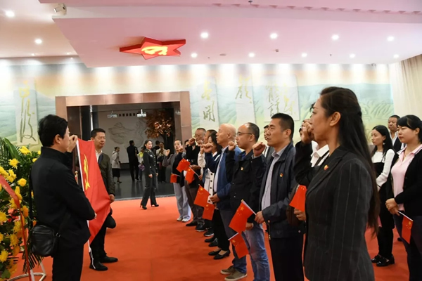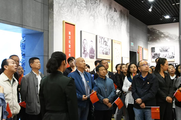 在“紅軍會師紀念館”內(nèi),由集團黨支部書記胡春蘭女士領(lǐng)誓,全體列隊重溫入黨誓詞,鏗鏘有力的聲音中,蘊含著對黨和國家的無限忠誠與熱愛。
