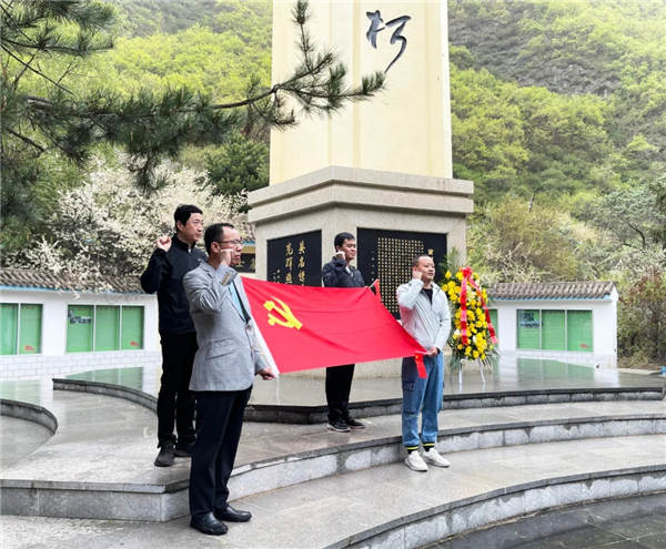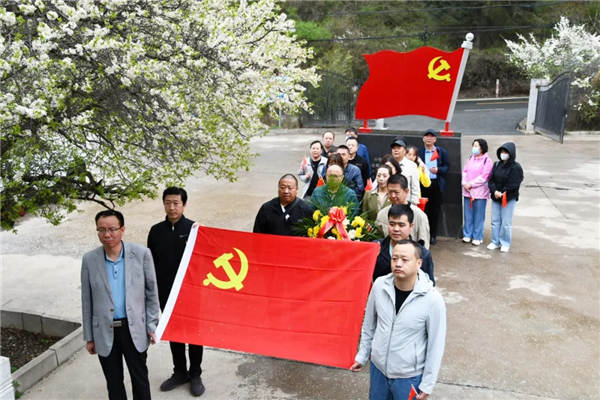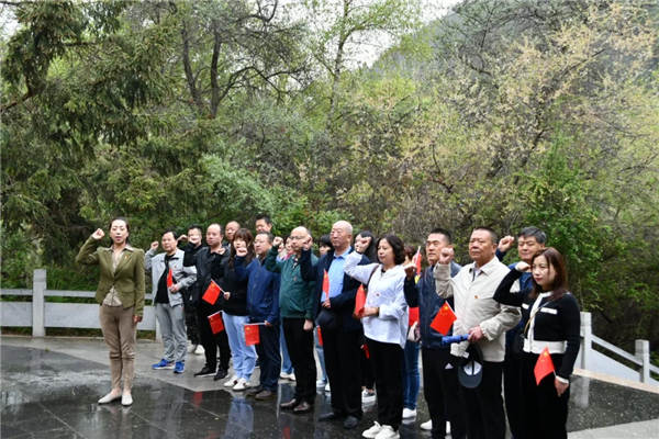 14日上午,全體人員佩戴黨徽、手持黨旗,在烈士紀(jì)念碑下全體肅立,奏唱國歌,向英烈敬獻(xiàn)花籃,重溫入黨誓詞,認(rèn)真聽講解員講解烈士們的先進(jìn)事跡。