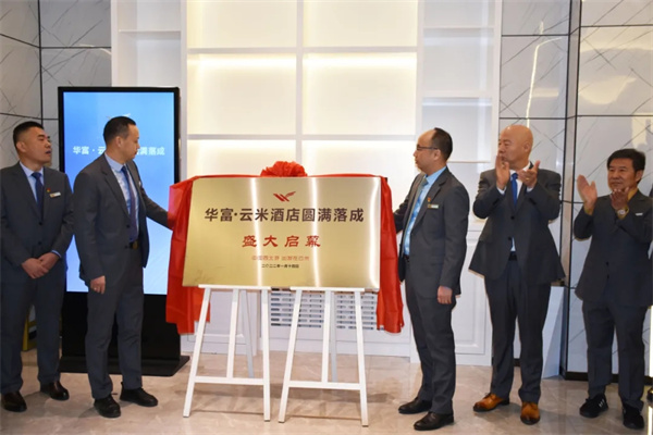 華富信息集團副總裁、開發(fā)公司總經(jīng)理陳亮先生與華富信息集團副總裁、投資經(jīng)營管理中心總裁、云米酒店管理公司總經(jīng)理張華先生一同為酒店揭幕