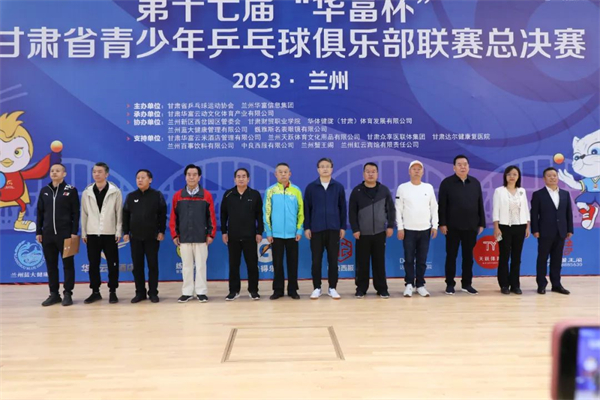 第十七屆“華富杯”甘肅省青少年乒乓球俱樂部聯(lián)賽總決賽由甘肅省乒乓球運動協(xié)會、華富信息集團主辦;甘肅華富云動文化體育產(chǎn)業(yè)有限公司承辦;蘭州新區(qū)西岔園區(qū)管委會、甘肅財貿(mào)職業(yè)學(xué)院、華體健隴(甘肅) 體育發(fā)展有限公司、蘭州藍大健康管理有限公司、巍雅斯名表眼鏡有限公司協(xié)辦;甘肅華富云米酒店管理有限公司、蘭州天躍體育文化用品有限公司、甘肅眾享醫(yī)聯(lián)體集團、甘肅達爾健康復(fù)醫(yī)院、蘭州百事飲料有限公司、中良西服有限公司、蘭州蟹王閣、蘭州虹云賓館有限責(zé)任公司支持。