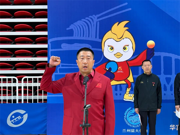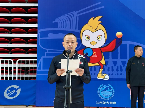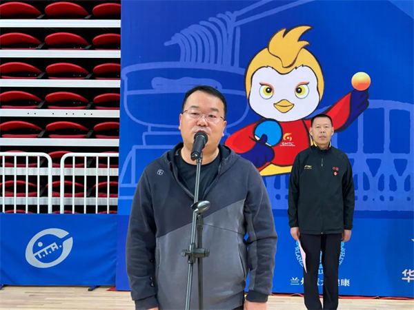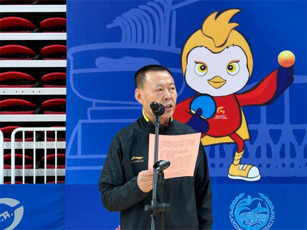 蘭州新區(qū)西岔園區(qū)管委會黨委書記龍衛(wèi)東宣布第十七屆“華富杯”甘肅省青少年乒乓球俱樂部聯(lián)賽總決賽開幕。